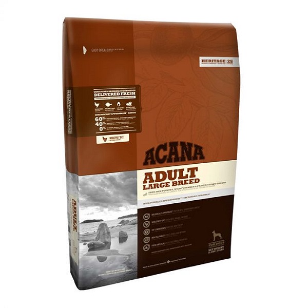 Large breed dogs experience extra stress on sensitive joints. ACANA ADULT LARGE BREED features rich sources of animal proteins to promote lean muscle mass, and is carbohydrate-and calorie-limited to support healthy body weight, minimizing stress on bones and joints