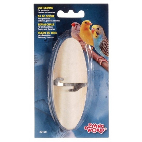 For Budgies, Exotic Birds and Canaries. Natural calcium and mineral source. For trimming and sharpening of the beak. With holder.