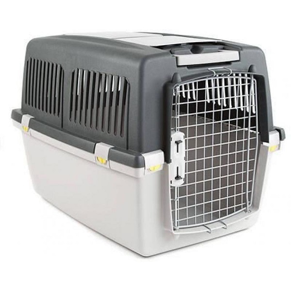 Practicalcarrier provided with anti-pressure relief stripes on the metal front door, side fastening door with latch, and fastener kit for safety to allow a safe transport for your pet. Produced according to IATA regulation.