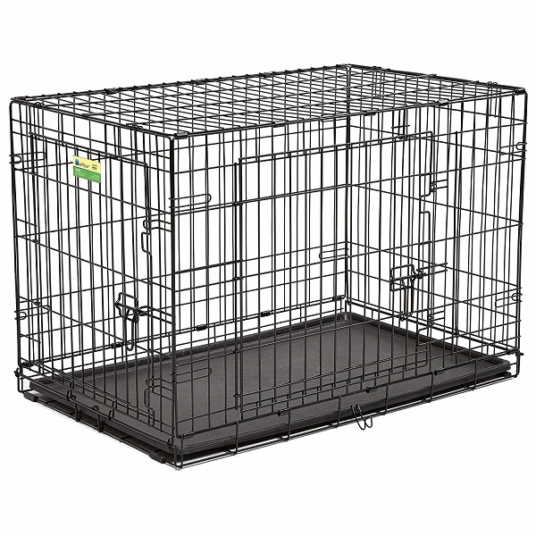 Includes secure, safe and convenient Laplock technology, front and side doors, leak proof plastic pan, puppy divider panel and plastic handles.