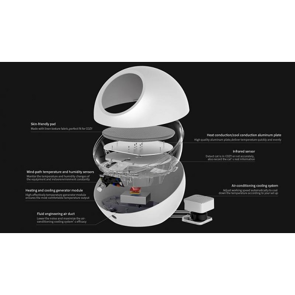 The ambient temperature of the home and humidity sensors work together in the Cosy Pet bed to monitor the device and adjust the temperature automatically, heating up in the winter and cooling down in the summer to ensure that your pet always has a comfortable resting place