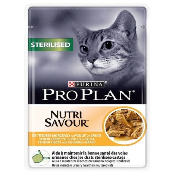 Pro Plan Nutri Savour Sterilised Cat is a balanced and complete wet food that contains all the necessary nutrients for cats. This cat food was formulated to help neutered cats maintain its urinary health. It’s a combination of the nutrition she needs and the taste she loves.
