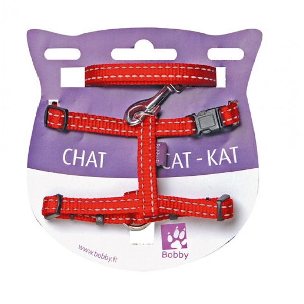 Fabric harness and lead kit with a small bell. Reflective and safety release.