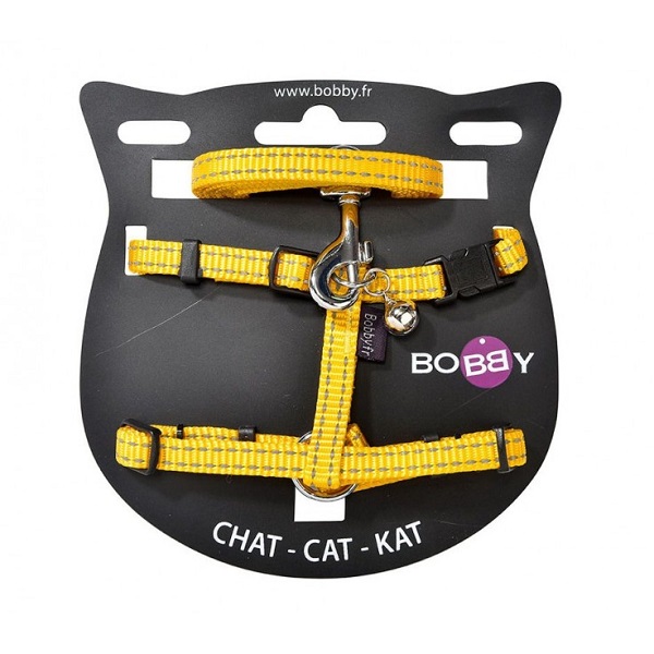 Fabric harness and lead kit with a small bell. Reflective and safety release. The SAFE harness is the security product for cats night walks. Bright colours and reflective oversewn will make the cat seen.