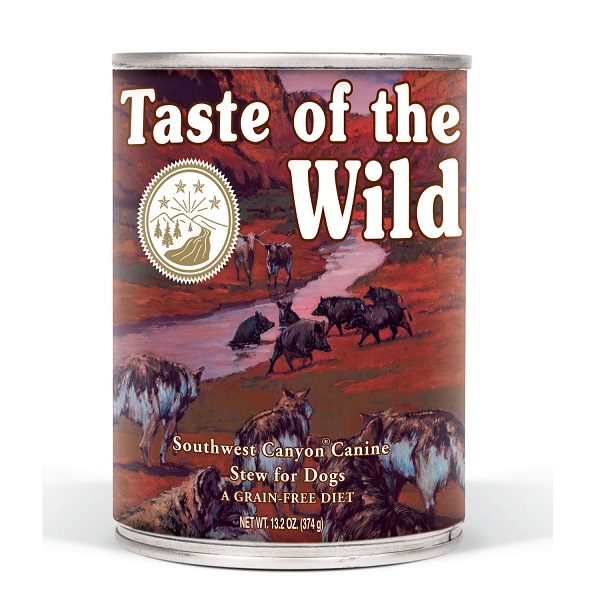 A great tasting complement to the dry Taste of the Wild formulas, the Southwest Canyon Canine Formula Stew will satisfy even the most finicky dogs. This complete and balanced formula can also be fed as your pet’s sole diet. Made with wild boar, this formula offers a taste sensation like no other. Contains peas, a great source of highly digestible energy. Supplemented with vegetables and fruits, this formula delivers antioxidants to help give your friend a healthy lifestyle.